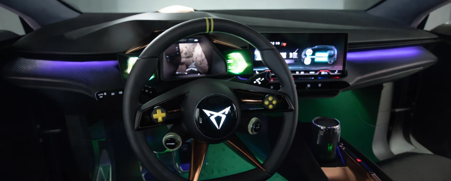 Egy beltér, ahol a technológia és az érzelem találkozik. Sportos részletek, futurisztikus fények és kompromisszummentes vezetési élmény.