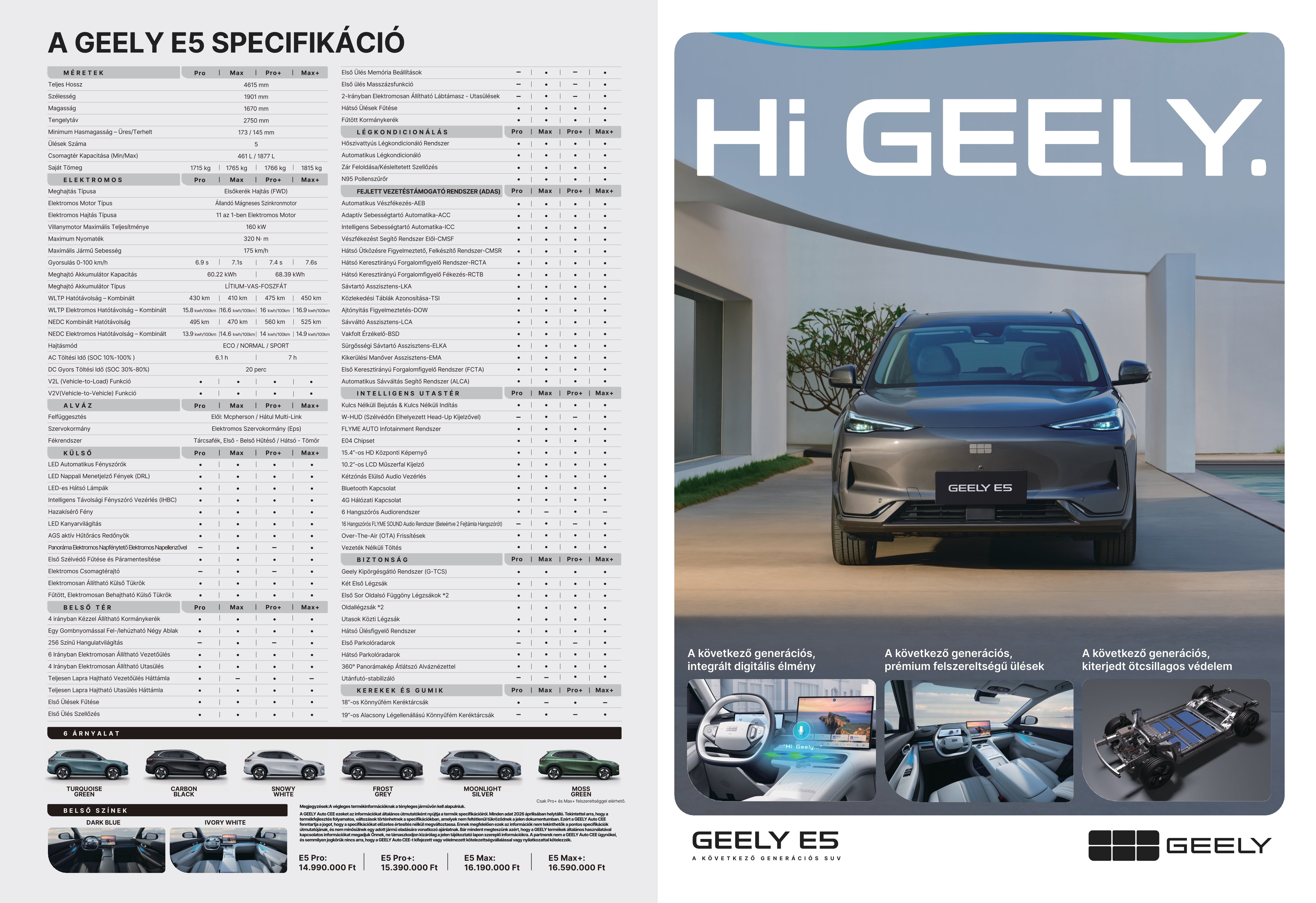 A Geely EM-i super hibrid hajtáslánc a hatékony elektromos működést és a nagy hatótávú benzinmotoros támogatást ötvözi, hogy dinamikus, takarékos és zökkenőmentes vezetési élményt biztosítson.