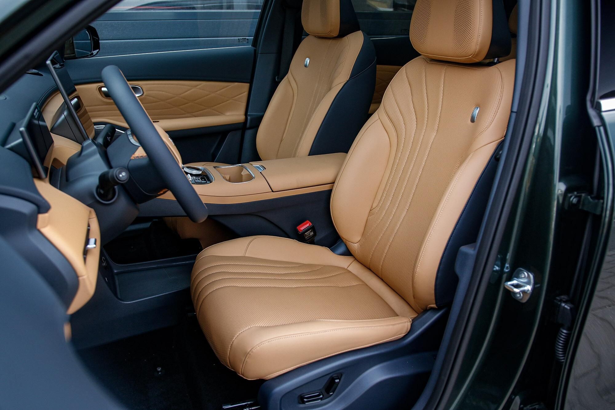 függönylégzsák, kikapcsolható légzsák, középső légzsák elöl, oldallégzsák, utasoldali légzsák, vezetőoldali légzsák, hátsó fejtámlák, állófűtés, fűthető első és hátsó ülések, fűthető első ülés, fűthető kormány, álló helyzeti klíma, üléshűtés/szellőztetés, bőr belső, műbőr-kárpit, automatikusan sötétedő belső tükör, bőrkormány, digitális műszeregység, dönthető utasülések, elektromos ülésállítás utasoldal, elektromos ülésállítás vezetőoldal, hangvezérlés, középső kartámasz, memóriás utasülés, memóriás vezetőülés, állítható kormány, fedélzeti komputer, HUD / Head-Up Display, digitális kétzónás klíma, fokozatmentes automata sebességváltó