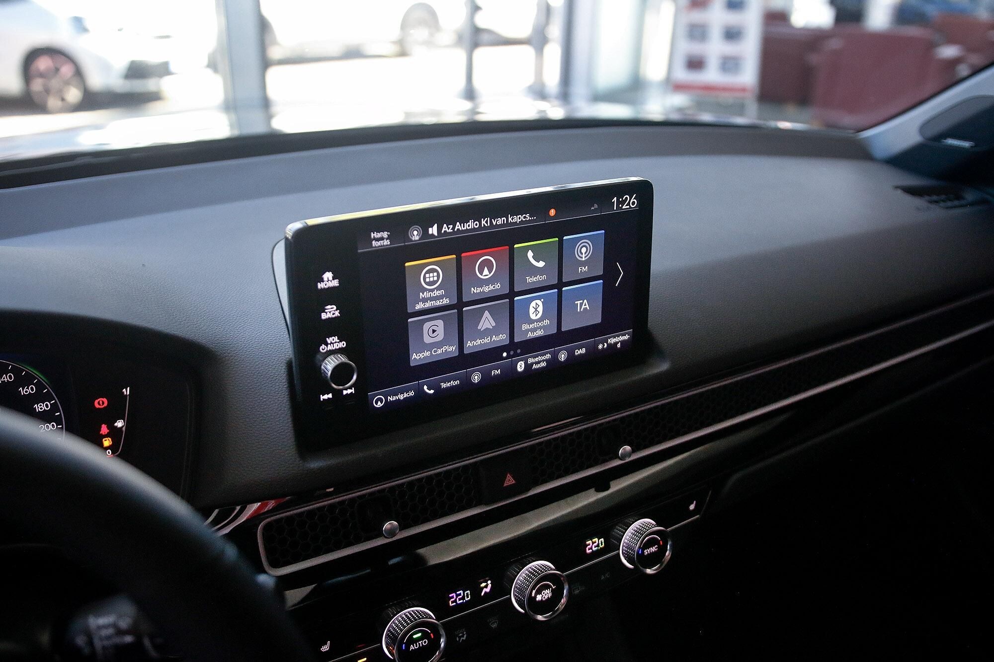 GPS (navigáció), 12 hangszóró, mélynyomó, bluetooth-os kihangosító, USB csatlakozó, Android Auto, Apple CarPlay, kormányról vezérelhető hifi, vezeték nélküli telefontöltés, WiFi Hotspot