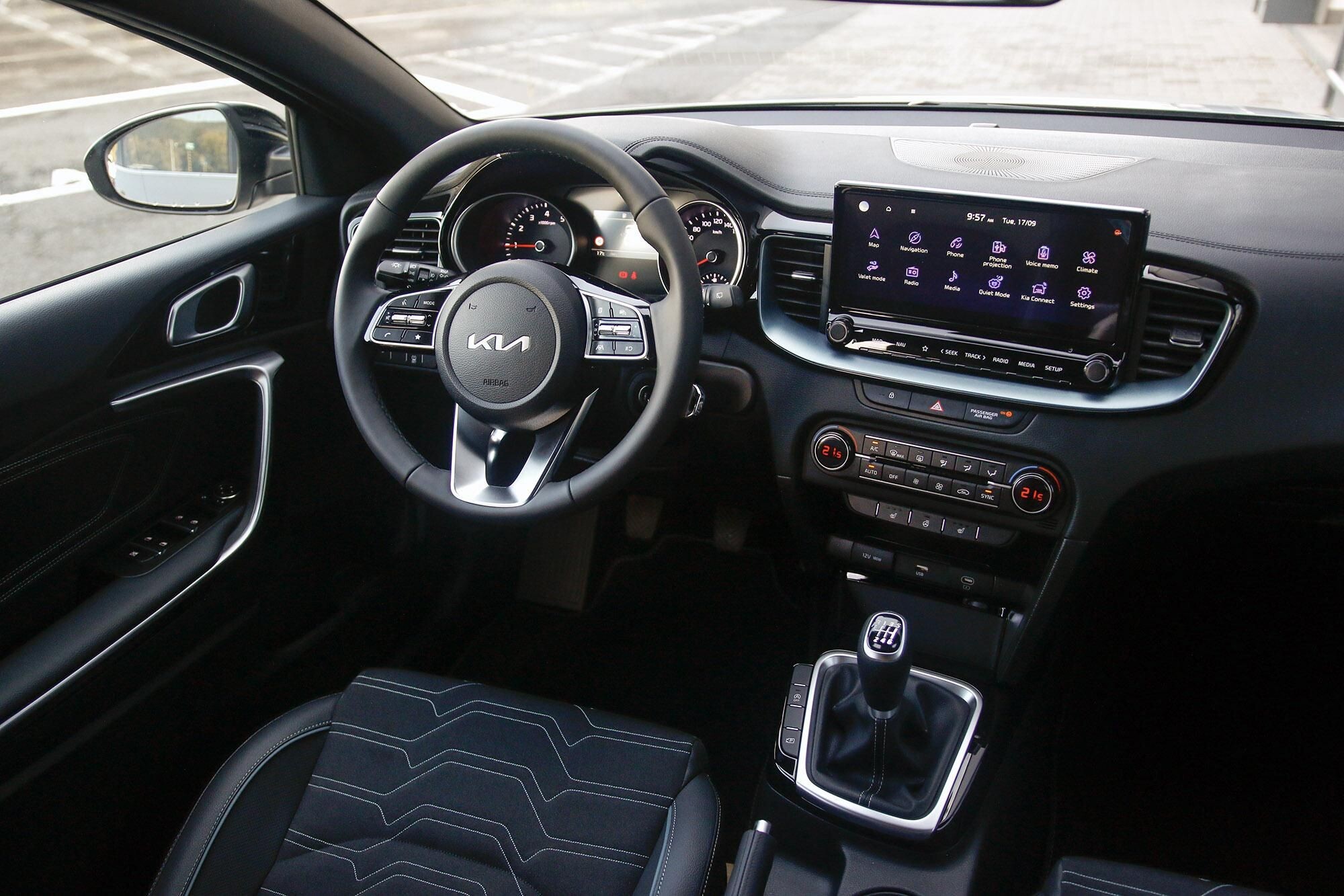 függönylégzsák, oldallégzsák, utasoldali légzsák, vezetőoldali légzsák, csomag rögzítő, hátsó fejtámlák, ISOFIX rendszer, fűthető első ülés, fűthető kormány, műbőr-kárpit, automatikusan sötétedő belső tükör, bőrkormány, deréktámasz, dönthető utasülések, középső kartámasz, multifunkciós kormánykerék, ülésmagasság állítás, állítható kormány, digitális kétzónás klíma, manuális (6 fokozatú) sebességváltó