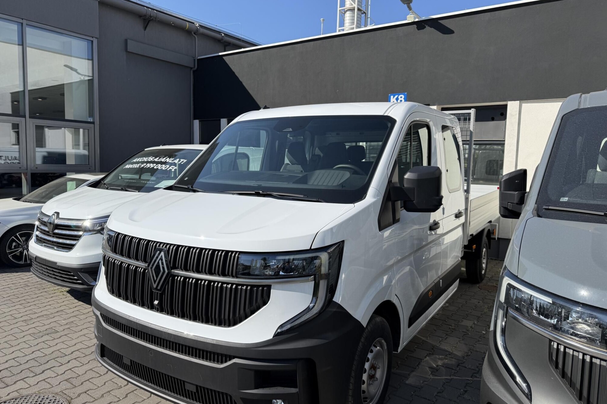 A Duna Autó Zrt. hivatalos Renault márkakereskedésében tekinthető meg! Renault Master Gyári plató Duplakabin Elsőkerék - extra - L3H1 3.5t 150LE-s modell eladó! Extra felszereltsége, amelyet a kedvezményes ár tartalmaz: ásvány fehér Ködfényszórók kanyarfény funkcióval, Automata távolsági fényszóróvezérlés, Vezető- és utasoldali frontlégzsák, utasoldali légzsák manuális deaktiválása, Színre fújt lökhárító betét a hűtőrács alatt, magyar nyelvű műszeregység. Kérje a Duna Autó Lízing üzemeltetéssel egybekötött tartós bérleti konstrukcióját! Átvehető azonnal, készletről. A fenti tájékoztatás nem minősül a Polgári Törvénykönyvről szóló 2013. évi V. törvény szerinti ajánlatnak, így nem fűződik hozzá ajánlati kötöttség sem! További részletekért és kedvezményes finanszírozási ajánlatért forduljon értékesítő kollégáinkhoz! UR-2600204
