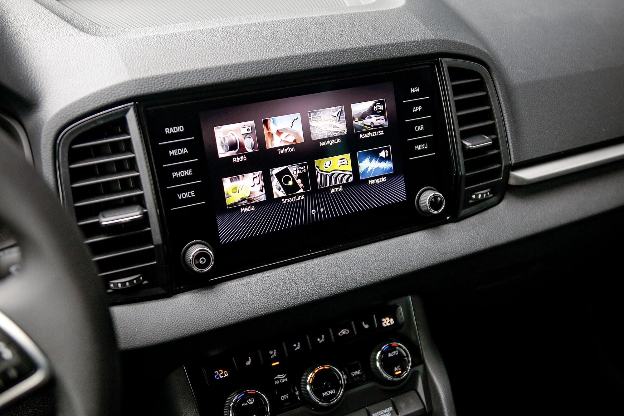 8 hangszóró, bluetooth-os kihangosító, USB csatlakozó, érintőkijelző, Android Auto, Apple CarPlay, kormányról vezérelhető hifi, multifunkcionális kijelző