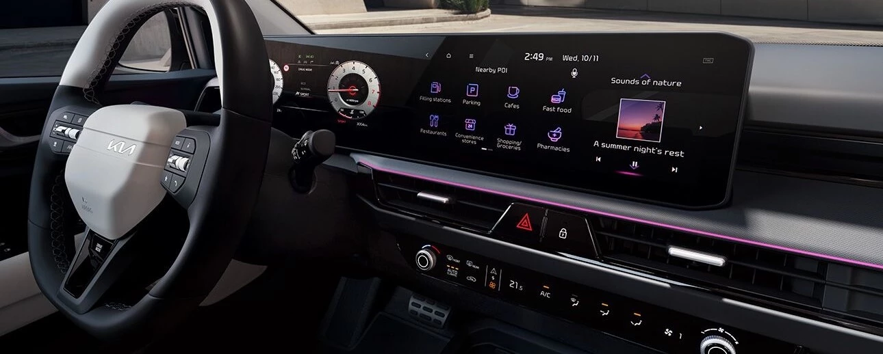 A navigációtól kezdve, a vezetést segítő hasznos információkig a két tökéletesen összehangolt 12,3 colos kijelzőn mindent láthat. A Kia felsőkategóriás modelljeiből ihletet merítve, ez az egyedülálló funkció a Stonic modellben maximális átláthatóságot biztosít minimális figyelemelterelés mellett. Minden fontos adat és szórakoztató tartalom közvetlenül a látóterébe kerül, így a figyelmét mindvégig az útra, és a vezetés élvezetére összpontosíthatja.